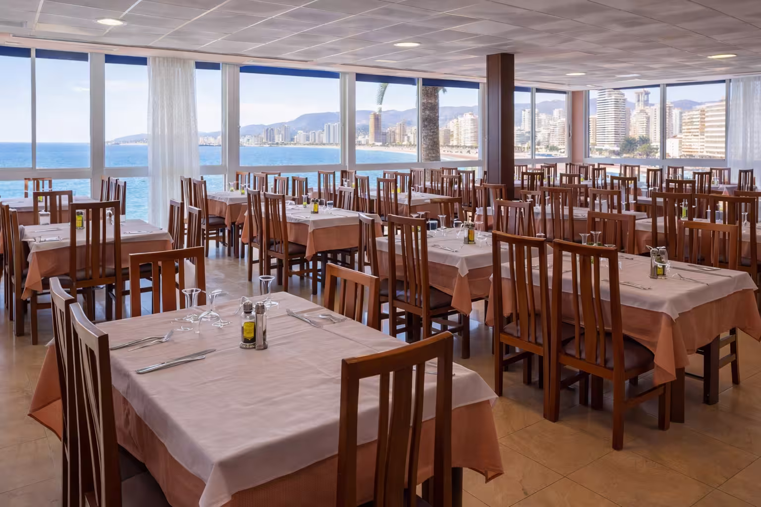 El Restaurante del Hotel Bossh Lido ofrece un espacio luminoso y acogedor donde disfrutar de una experiencia gastronómica frente al Mediterráneo. Un entorno agradable en el que cada comida se convierte en un momento especial, acompañado por unas espectaculares vistas al mar y al skyline de Benidorm.